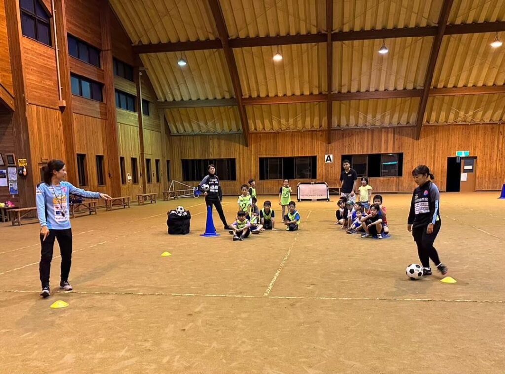 グッズのデザインをさせてもらうことも増え、デザインしたフラッグを入場の時に振ってくれているのを見ると感慨深かったです。地域の子供たちと交流したいという希望からやらせてもらっている鳴沢村のサッカー教室も、参加してくれる子がどんどん増え、ホーム戦やイベントにも来てくれる子もいたり、応援してくれる人が増えたと思います。